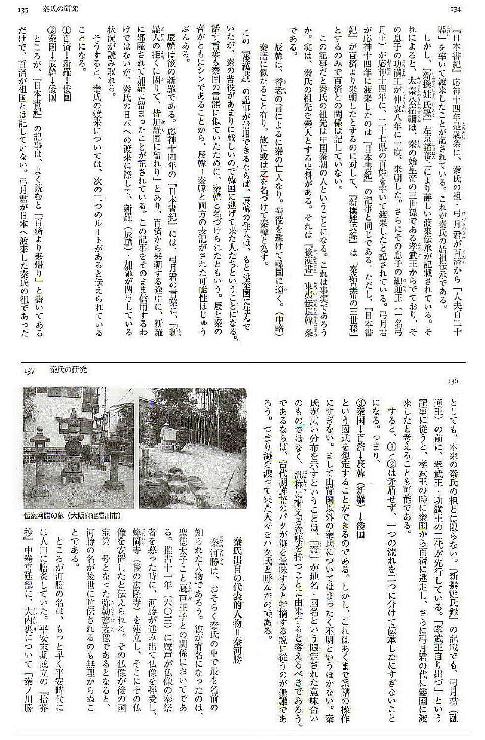 秦氏の中で一番の有名人(?)は「秦河(川)勝」であるが、彼の墓は大阪府寝屋川市川勝町にある。この付近には秦氏に関する古