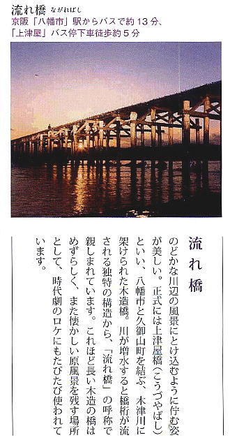 石清水八幡宮 飛行神社 松花堂 流れ橋(時代劇など、映画撮影が盛んに行われている)