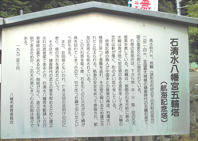 まさしくこの解説の通りである。よく調べて書いている。というか、ここに棲んでいる八幡市民が書いたのかも知れない。八幡市は