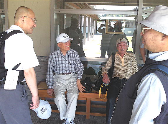 庭園内に入ると、な、なんと休憩所に服部さんが待っていた。服部さんは昨年脳梗塞で倒れ、幸い初期だったので大事には至らなかった