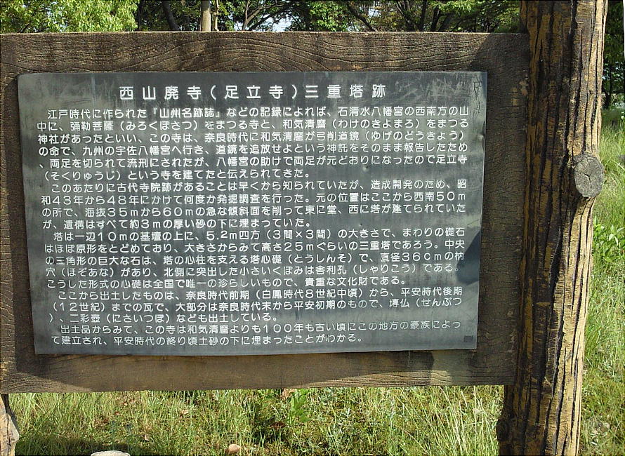 ここは奈良時代から平安にかけての頃の古代寺院があった場所である。この周辺が西山なので「西山廃寺」と名付けられているが、