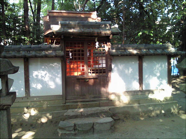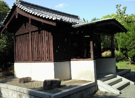 がその地とされている。1402年(応永9年)の創建と伝えられる一間社流造檜皮葺。 隣接して八幡神社の末社が並んでおり、本殿より