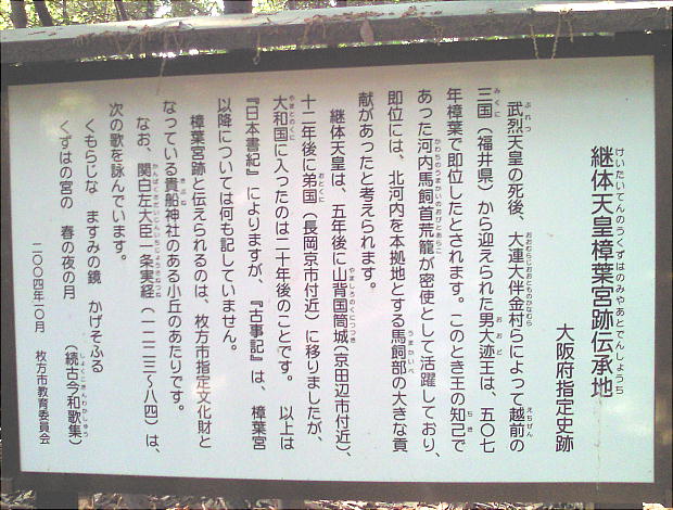 ■市民の森(枚方・継体天皇樟葉宮跡)・交野天神社 出典: フリー百科事典『ウィキペディア(Wikipedia)』