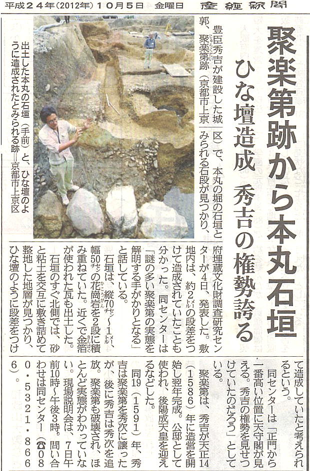 聚楽第址石碑のある通りを挟んだ向かい側(南側)の、ハローワーク西陣(京都西陣職業安定所)の建替工事に伴う発掘調査で、