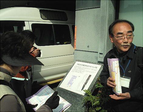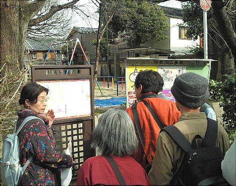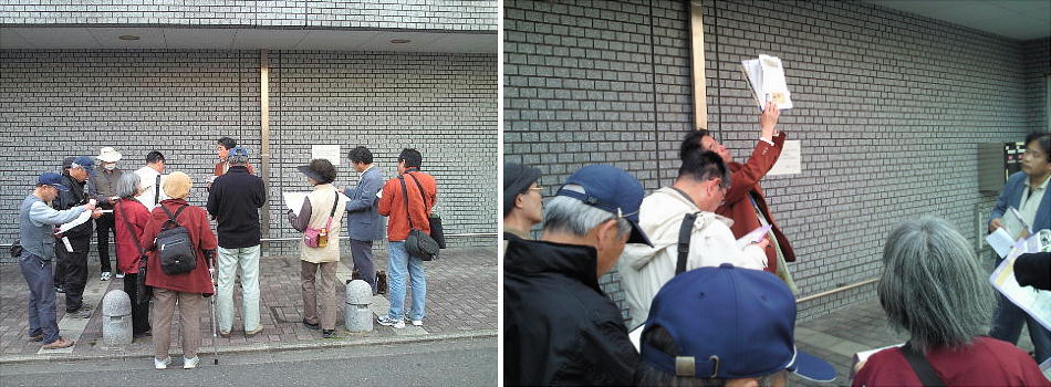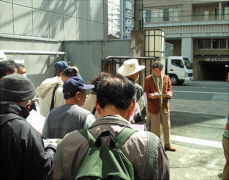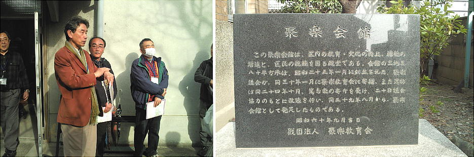 財団法人「聚楽教育会」の拠点、「聚楽会館」にて梶川次長がウォーキング終了のご挨拶。4つのグループが順繰りにここへ