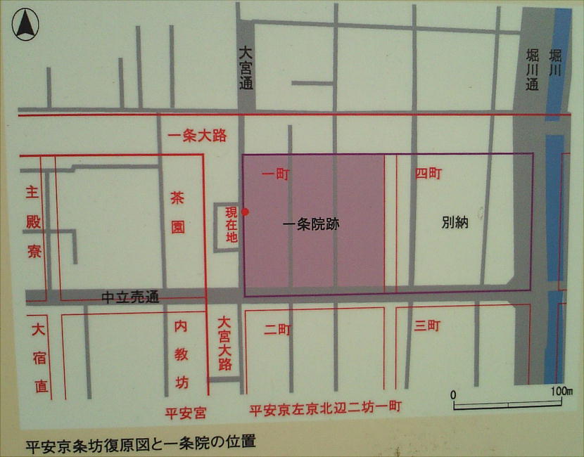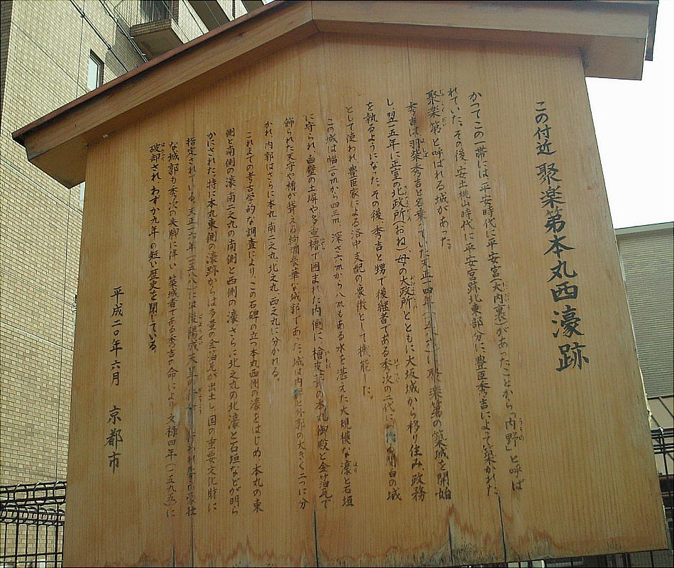 第東堀の中に含まれており、石碑がある大宮通の一条から下長者町間は聚楽第東堀の南北とほぼ一致している。