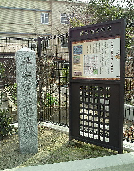2009年5月に建立された石碑。聚楽学区内で初めての聚楽第址を示す石碑として建てられた。秀吉は、ここに平安時代に大内