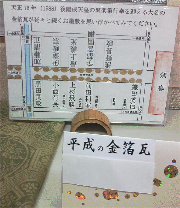 あったとされる地点であり、太閤(豊臣秀吉)ゆかりのデザイン瓦だったため、聚楽第の屋敷に使用されたものと考えられ、2002