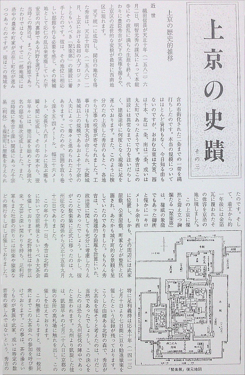 知られており、その初見は『多聞院日記』天正14年2月27日の条にある「去廿一日ヨリ?野御構普請」。「聚楽」の名が使われ始め
