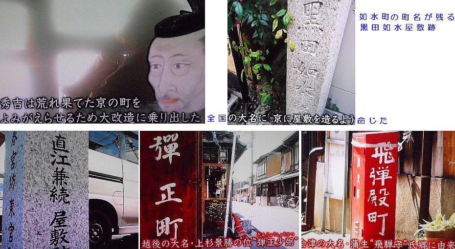 聚楽第の周辺地域には、秀吉麾下(きか)の大名屋敷を配置し、その範囲は、北は元誓願寺通、南は丸太町通、東は堀川通、西は