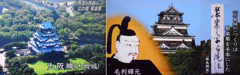 聚楽第城の図面は残っていないが、上の屏風や、同時に造っていた大阪城、聚楽第を真似たとされる広島城から