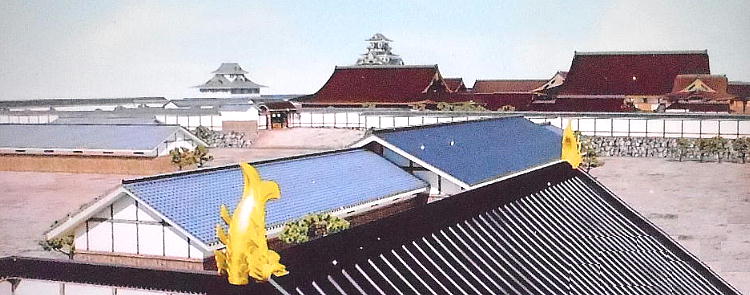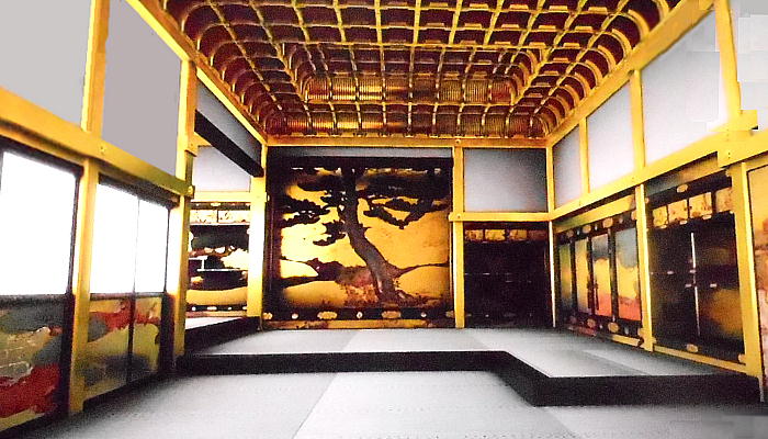 桃山時代の末期、豊臣秀吉が建てた政庁兼邸宅である。竣工して8年後に取り壊されたので、分からないことも多い。