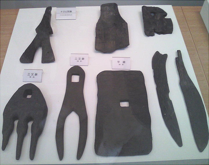 (うちナスビ形1)など極めてバラエティに富んでいるうえ、とくに三又鍬の存在は西日本での初例として注目されている。