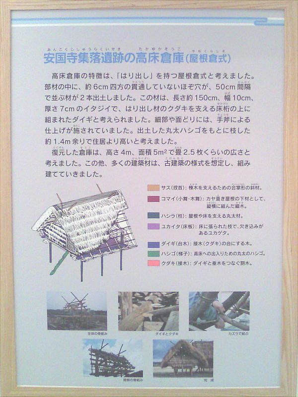 としたらという仮定のもとに「一木造りのハシゴ状のものがあり、これによって民俗例より高倉(たかくら) が想定され」、「又木の