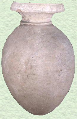 安国寺遺跡からみつかったこの壼型土器は、普通の壼の口の部分に粘土の「タガ」を重ねて内反<うちぞり>または垂直に起立させる