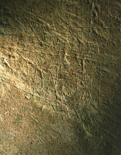 壁の向い合う二羽の鳥以外は、いずれも線刻に重複が多く、縦横に無数の線刻があり、描かれた線画を詳細に見ることはむずかしい。
