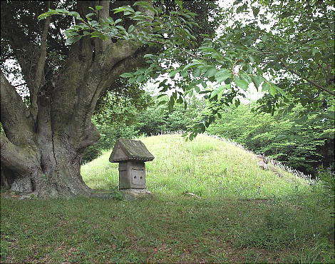 石によって築かれ、羨道<せんどう>と玄室<げんしつ>とよりなり、羨道部は幅一.一mで、現在側石は埋まり天井石を失っている。