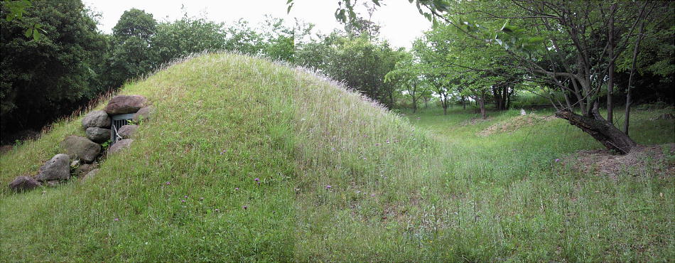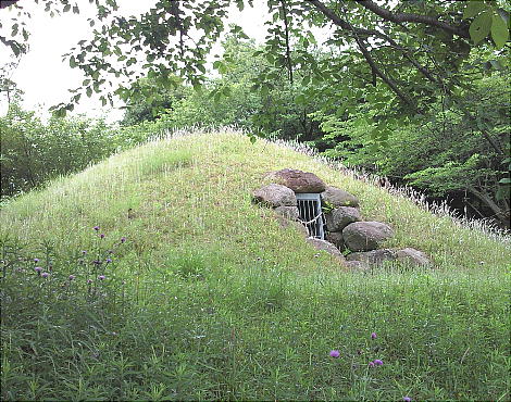 つぞく) 大刀金具 金環 ガラス玉 須恵器(すえき)坏 高坏(たかつき) などが出土した。一方、閉塞部とその外側の前庭部からはほぼ