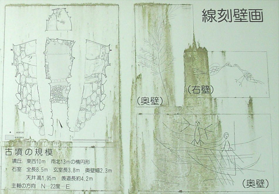 がみられ、画題の多い点においても、大分県内の古墳線刻壁画中の代表的なものである。