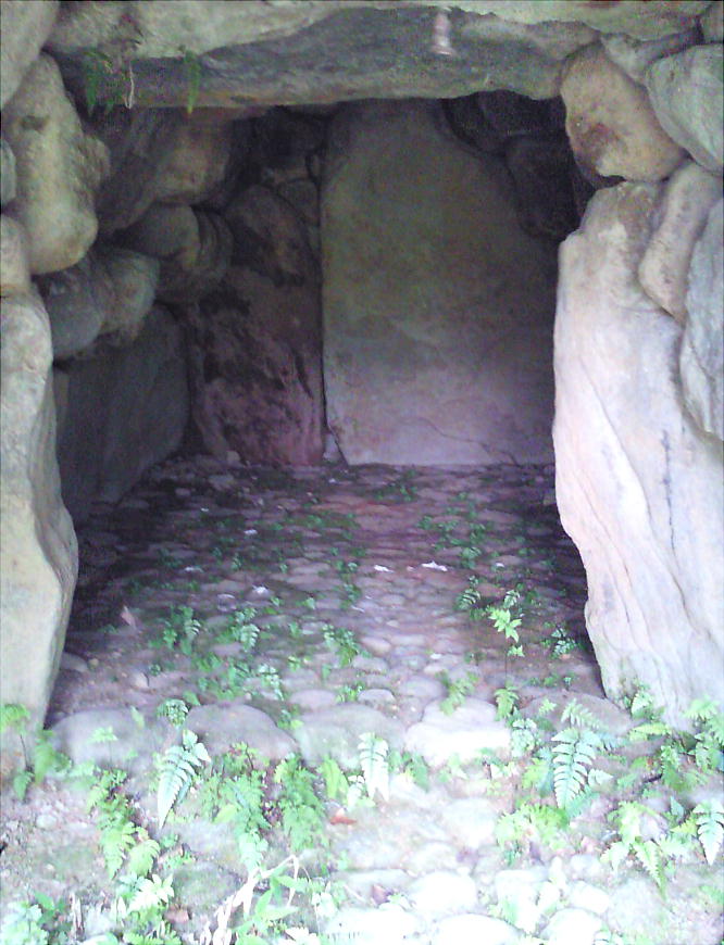 玄室は高さ約二.二m、奥行三.二m、幅約一mの長方形を呈すもので、各壁は大形の腰石を配列し、上方にかけてわずかに迫りを持