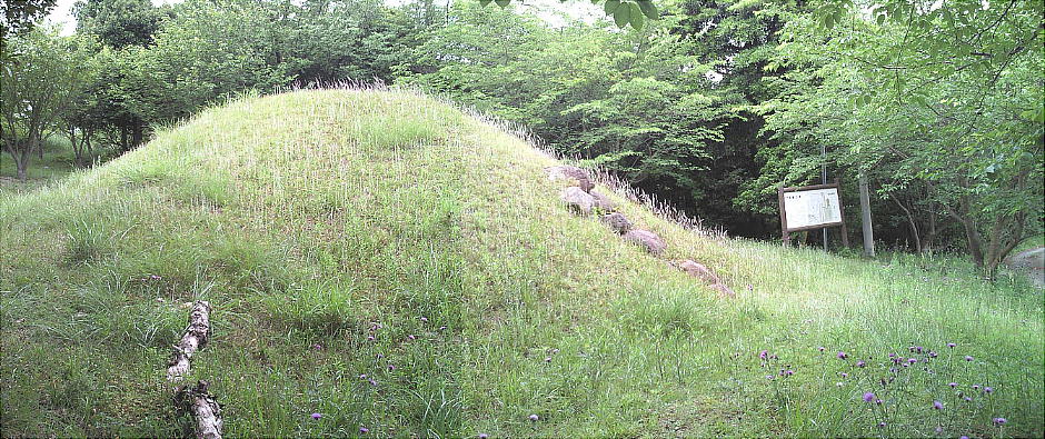 高110mほどのなだらかなオノ山の頂部に営まれた11基からなる 西山古墳群 のうちの1基である。古墳群からの眺望はよく、黒