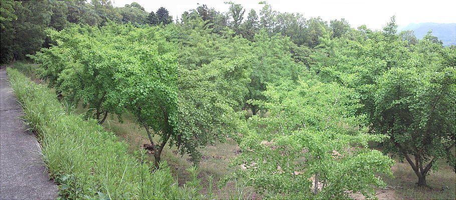 ◆ 古墳の下はズーツと斜面で、そこに果樹園らしきものがあったがまるで見たことない樹木だった。