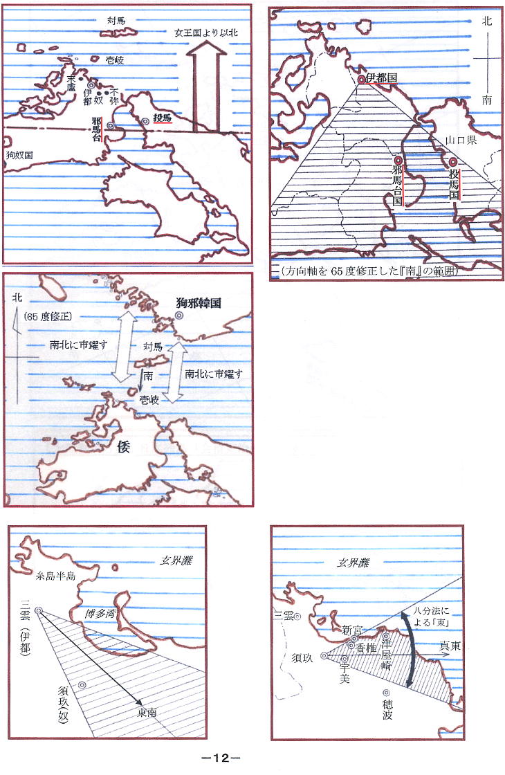 ●基本的に、「魏志」の記事を参照した正史においては、邪馬台国は帯方郡から南へ南へと降ってきた所にあり、さらにその南に敵対