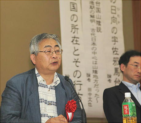 ◆ 挨拶に混じって、田村社長はちゃっかり「季刊邪馬台国」の宣伝をしていた。まぁ、共催だしね。