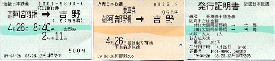 高野さん、乾さんは禁煙車へ行ったので、私だけ喫煙車に乗ったが終点の吉野までっていたのは私だけだった。「発行証明書」な