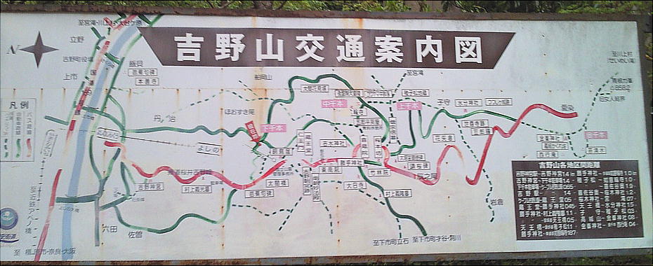 には示されておらず、各出版社が発行する地図によっては位置や標高がまちまちである。吉野山といえば吉野大峯ケーブル自動車