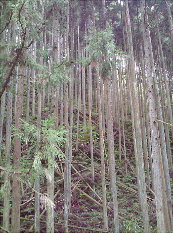 見渡す限りの「杉の美林」だが、これでも最近はめっきり手入れが届かなくなっているそうだ。吉野ですらそうならこの国の林業