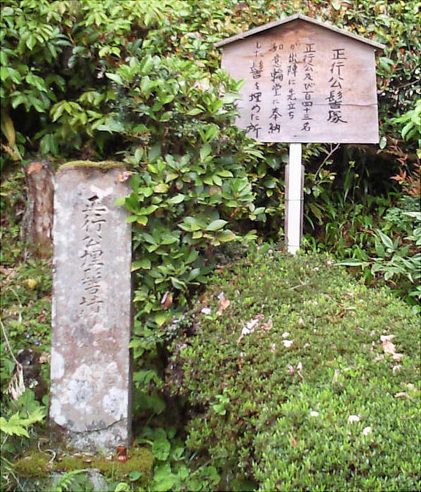 正行一行の髪を埋めた鬢塚(もとどりづか)。「髷(まげ)づか」と我々は読んだが、鬢(もとどり)だったのだ。