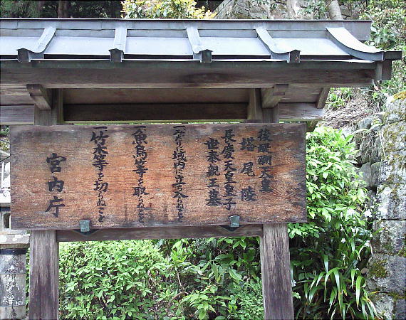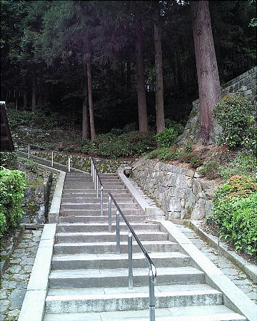 本堂の背後には足利尊氏により京を追われ、吉野の地で死去した後醍醐天皇の陵・塔尾陵(とうのおのみささぎ)、世泰親王墓が