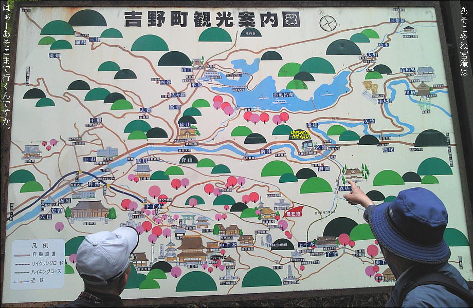 「あすこが宮滝やね」「はぁー、すぐですね」「こんな地図ではわからんのちゃう」「うぅーん、でもたぶんこの山越えたらすぐでっせ」