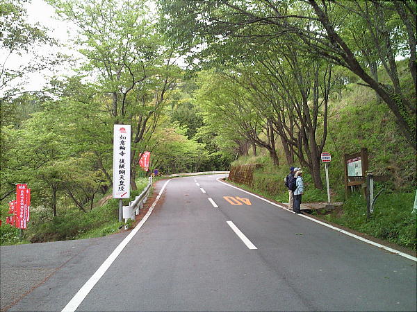 如意輪寺から上がってきてハイウェイを横切った所にバス停があって、そこから宮滝への道が続いている。