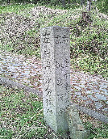 ほどなく、宮滝への分岐点がある。左へ曲がって上ると、上千本、吉野水分神社へ通じている。