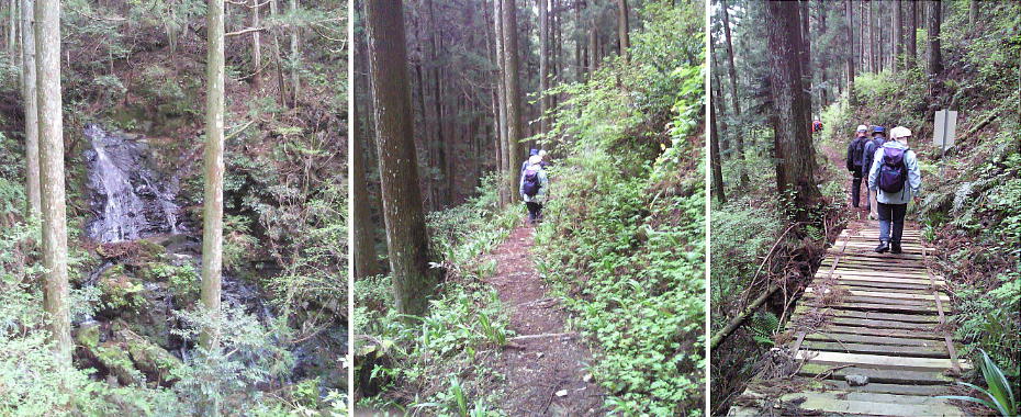 ぎや小川や滝があって楽しい山道である。昨日の雨もまったく影響が無い。空気はあくまで澄み、静寂に支配された空間である。