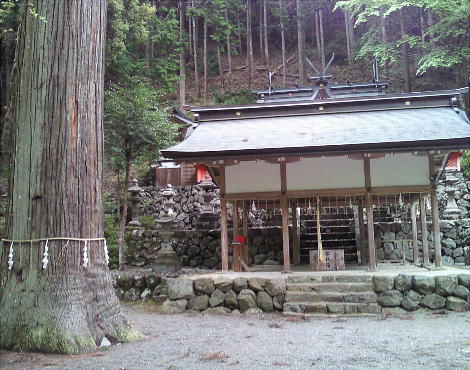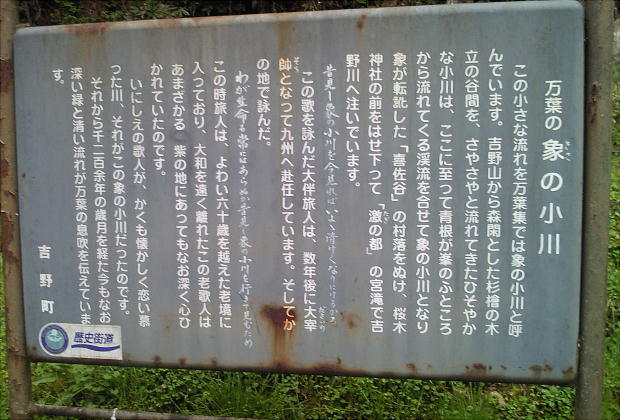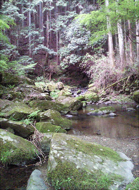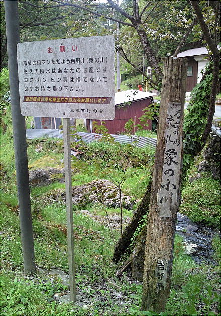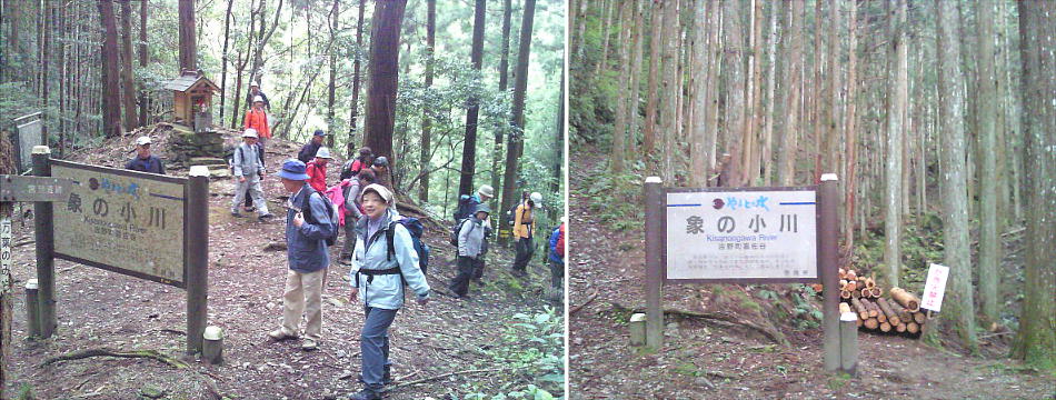 4,50分ばかり林の中を降ると、その昔、吉野巡りの旅人達が一息入れたという象(きさ)の小川の祠へでる。なんと本居宣