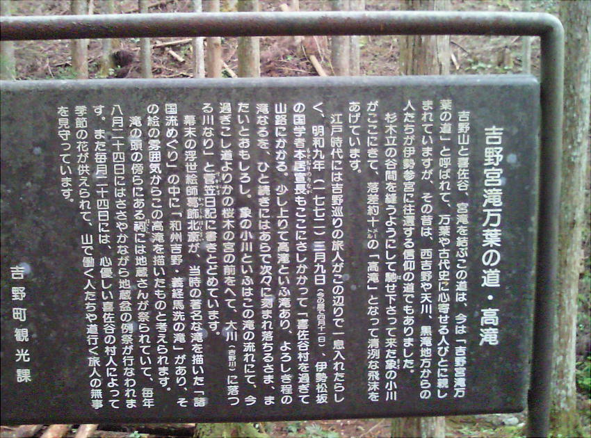 とでも形容できそうな、まるで時間を忘れたかのような山村である。懐かしいような寂しいような集落の中を「宮滝」へ向かう。