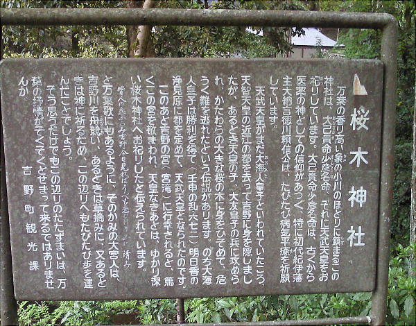 天武天皇が近江から吉野へ隠遁した時、近江から派遣された刺客に襲われたが、桜の木陰に隠れて難を免れたという伝説から、