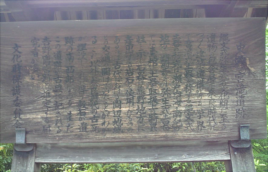 1930年(昭和5)から断続的に発掘が行われた。 縄文時代の後期〜晩期と、弥生時代の中期に、吉野地方きっての大遺跡として注