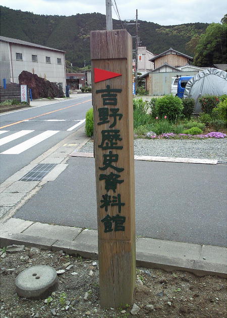 広場の角を右へ曲がって、道なりに右へ坂道を上ってゆくと、左側の丘の上に吉野歴史資料館がある。