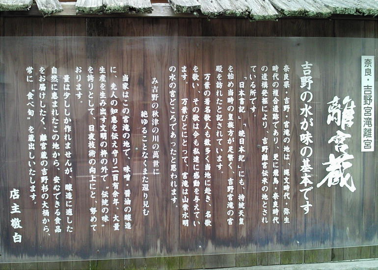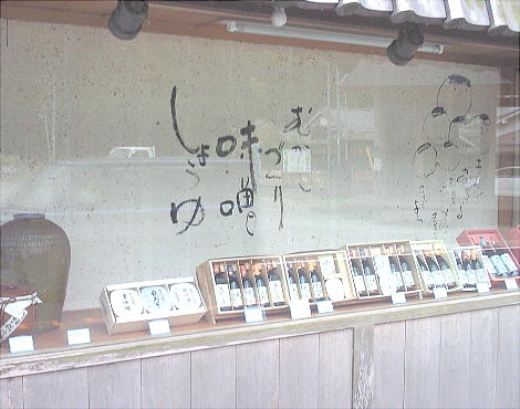 国道に出てバス停を通り過ぎて暫く行くと左手に宮滝醤油があり、その向かいが広場になっていて土産物を商う小さな店がある。