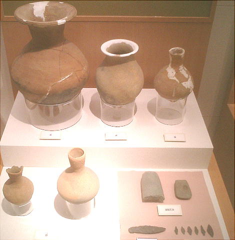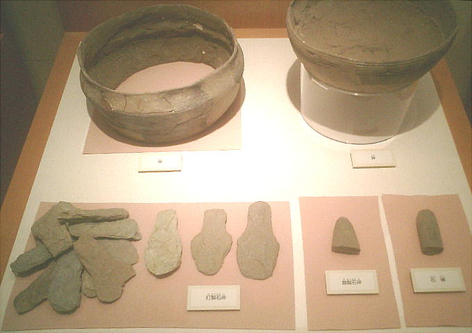 敲石、縄文時代後期の標準土器である宮滝式土器などを展示。
