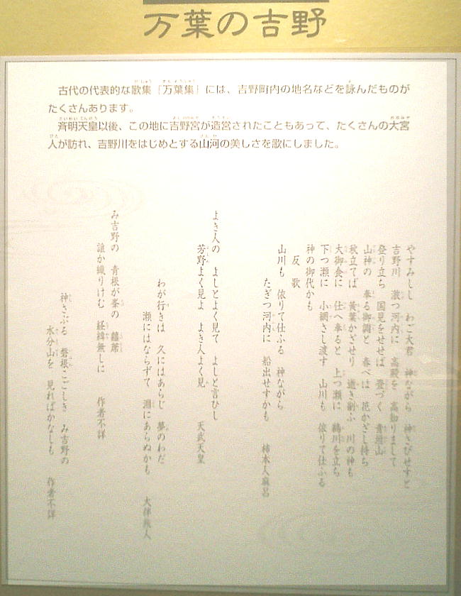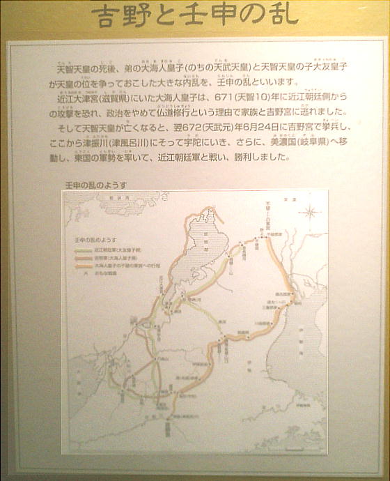 では吉野をよんだ代表的な万葉歌や、壬申の乱の経路図も展示している。
