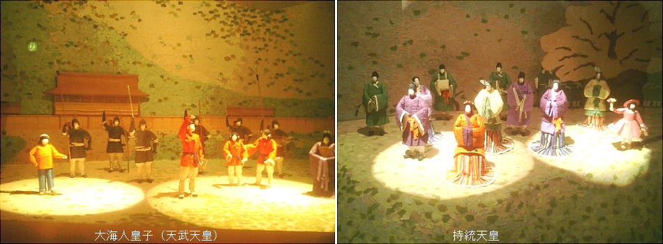 (後の持統天皇)、草壁皇子、大津皇子、高市皇子、河嶋皇子、忍壁皇子、芝基皇子と共に行幸し、「千年の後まで、継承の争い