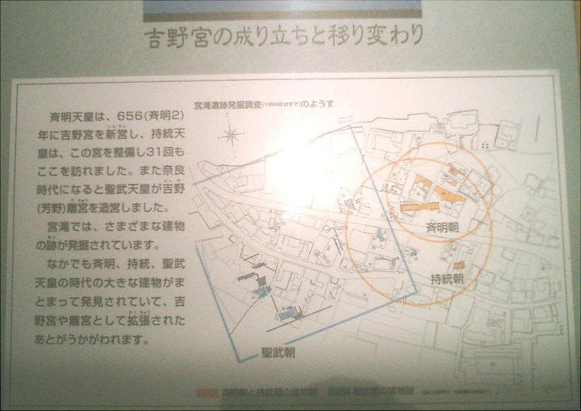 ある。飛鳥人にとって、大河・吉野川は大きな驚きで、吉野宮滝の風景が愛されて、舒明天皇の頃、そこに吉野離宮が設けられた。