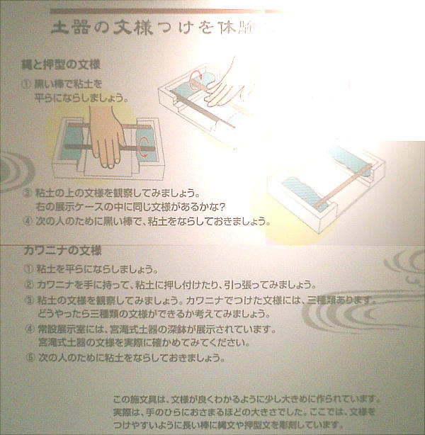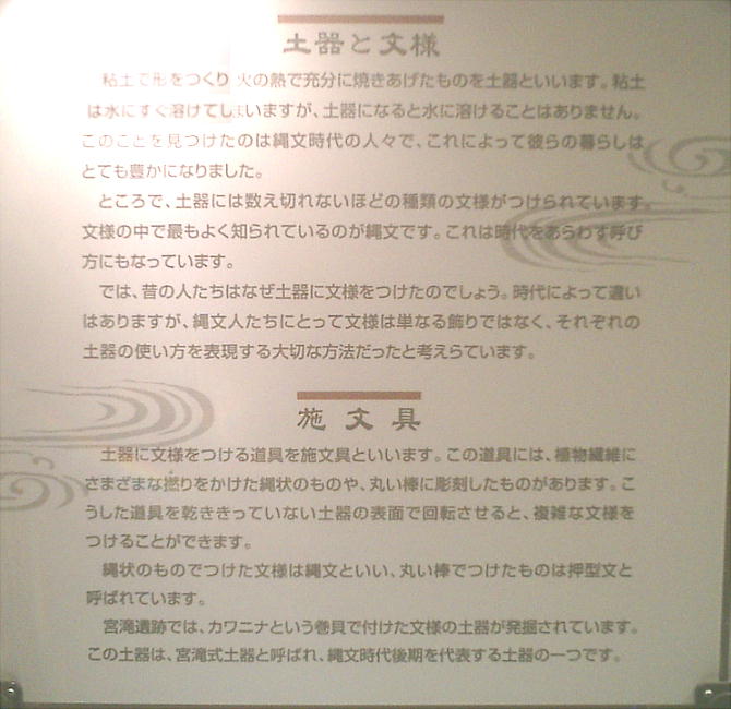 展示室では宮滝遺跡の展示を行っている。宮滝はかつて吉野の中心ともいえる場所だった。それを物語るように遺跡からは縄文時