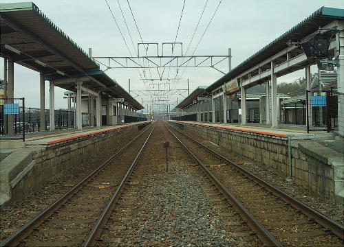 線路を挟んで向かい側の駅舎がメインのようだったので、踏切を渡ってトイレを探す。
