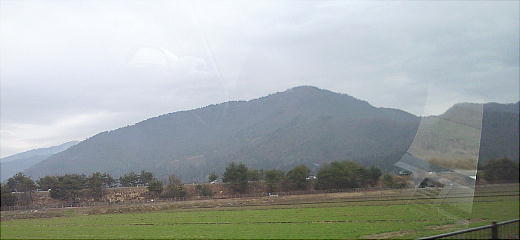 車窓から大嶽山(おおずくやま)が見えている。あそこは小谷城の支城である大嶽城があったところだが、最初はあそこが小谷城